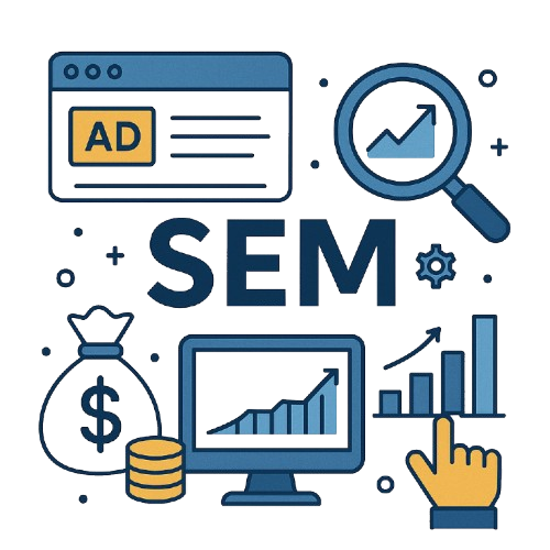 SEM is a paid advertising strategy where your business appears above organic results on search engines like Google. This includes running search ads, display ads, shopping ads, and remarketing ads. Unlike SEO β which takes time β SEM gives instant visibility, measurable results, and complete control over your budget. With the right keywords, landing pages, and ad setup, SEM can scale your business quickly.